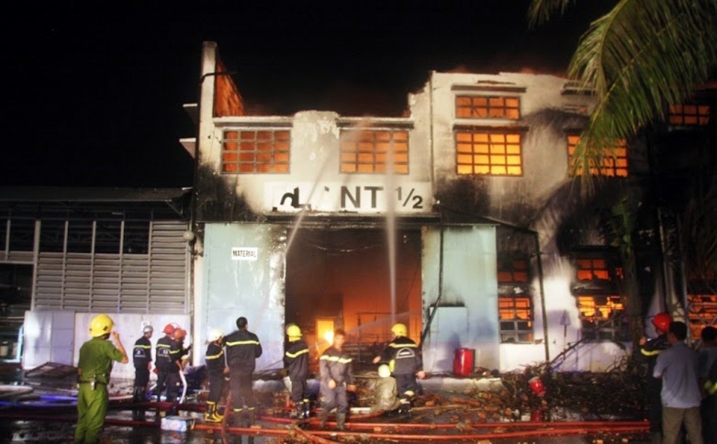 | Vụ hỏa hoạn xảy ra lúc 20h30 ngày 6/3 tại công ty SamHo chuyên sản xuất giầy thể thao, 100% vốn Hàn Quốc. Công ty này có gần 10.000 công nhân, đóng tại tỉnh lộ 8, xã Trung An, huyện Củ Chi, TP HCM. |