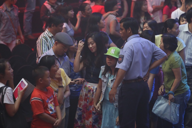 Vợ và con gái của nhạc sĩ Huy Tuấn nắm chặt tay nhau trong khi chờ anh kiểm tra điện thoại và chuẩn bị ra về sau đêm Liveshow 4 của The Voice Kids. Hình ảnh hạnh phúc của gia đình nhạc sĩ khiến nhiều người ngưỡng mộ và cả ghen tỵ.