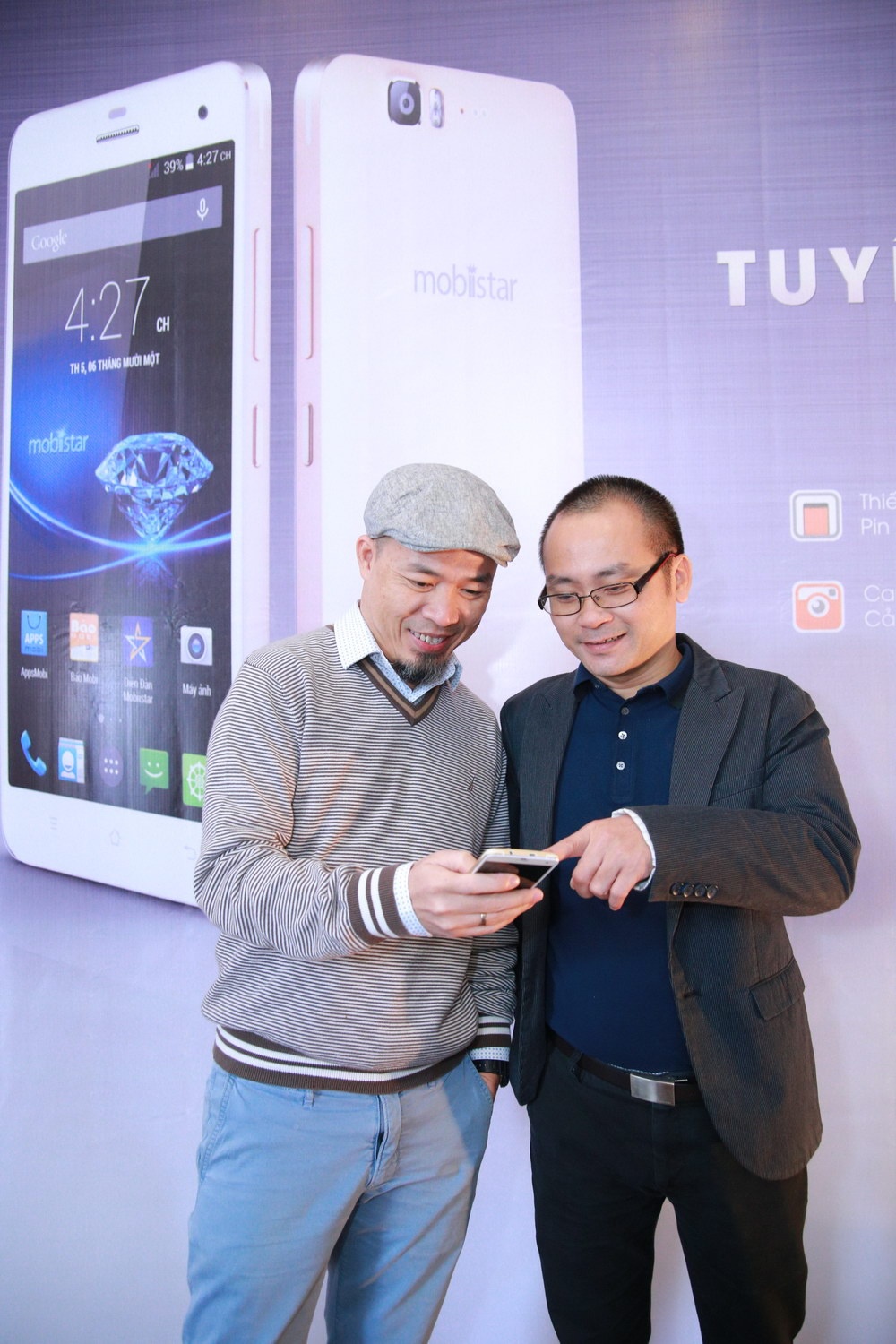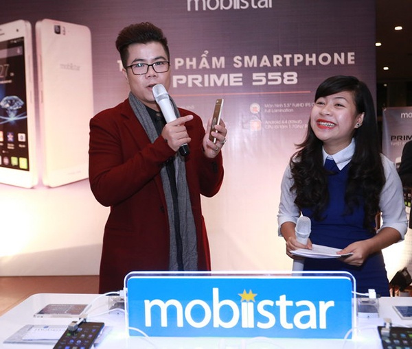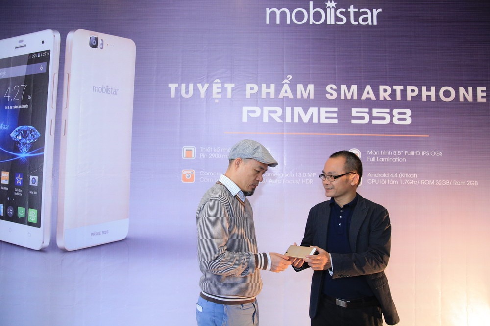 Nhạc sĩ Huy Tuấn nhận món quà đặc biệt là sản phẩm mới PRIME 558 từ CEO của Mobiistar.