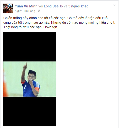 Nhưng vì tình cảm dành cho đội bóng quê hương Quảng Ninh và trách nhiệm khi đeo tấm băng đội trưởng, Minh Tuấn vẫn quyết định ở lại để cống hiến trong mùa giải đầu tiên đội bóng đất mỏ được tham dự V.League.