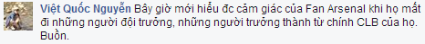Trong số rất nhiều chia sẻ của các fan, có người đã mượn cảm xúc dành cho Arsenal khi Pháo thủ lần lượt đánh mất các trụ cột để nói về việc Quảng Ninh mất Vũ Minh Tuấn.