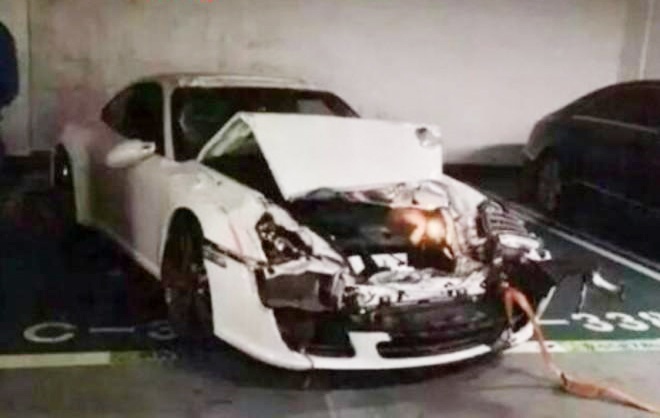 | Phần đầu của Porsche 911 hư hại nặng. |