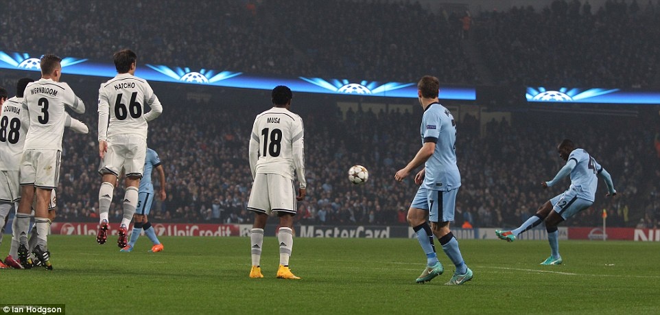 | Dẫu vậy, chỉ 6 phút sau khi nhận bàn thua, Man City đã đưa trận đấu trở về vạch xuất phát nhờ cú sút phạt hàng rào đẳng cấp của Yaya Toure. |