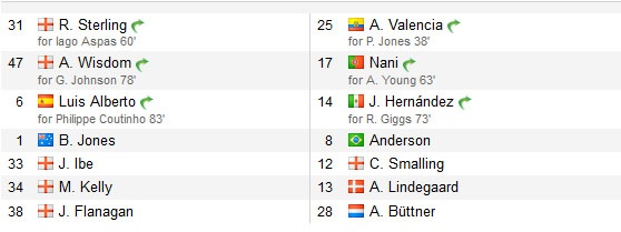 Không tạo ra được những tình huống tấn công sắc nét về phía cầu môn của đội chủ nhà, MU còn chịu tổn thất nghiêm trọng về lực lượng khi Phil Jones dính chấn thương và không thể tiếp tục thi đấu. Trong tình cảnh không còn trong tay hậu vệ phải xịn, HLV David Moyes đã phải đưa Valencia, một cầu thủ có sở trường chạy cánh phải vào sân. Đây là sự điều chỉnh đội hình không mong đợi của MU.