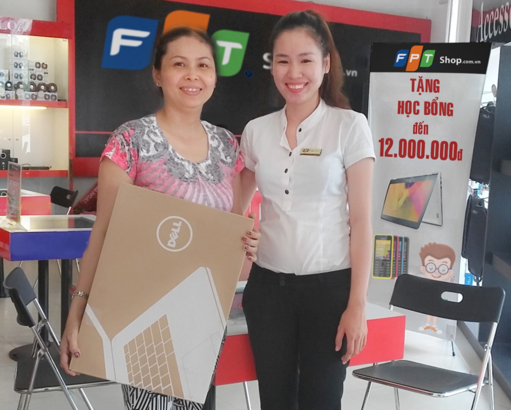 Bạn Tôn Ngô Lê Minh (Trà Vinh) mua laptop Dell N3543 trị giá 13,19 triệu đồng tại FPT Shop số 149 Điện Biên Phủ, TP Trà Vinh đã bất ngờ nhận được quà tặng tiền mặt trị giá 12 triệu đồng. Như vậy, bạn Minh đã mua được mẫu laptop cao cấp này để chuẩn bị cho năm học mới với số tiền chỉ 1,19 triệu đồng. “Lúc thấy chương trình tặng học bổng trên Fanpage FPT Shop, mình đã nghĩ nó là xa vời, hoặc có thể chỉ trúng được vài trăm nghìn, không ngờ tới mua lại nhận ngay giải đặc biệt 12 triệu đồng”, Lê Minh chia sẻ.
