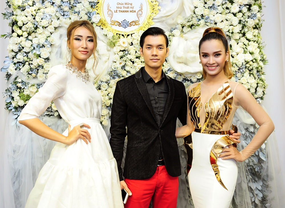 | Nhan Phúc Vinh bên cạnh người mẫu Trang Khiếu và ca sĩ Ái Phương. |
