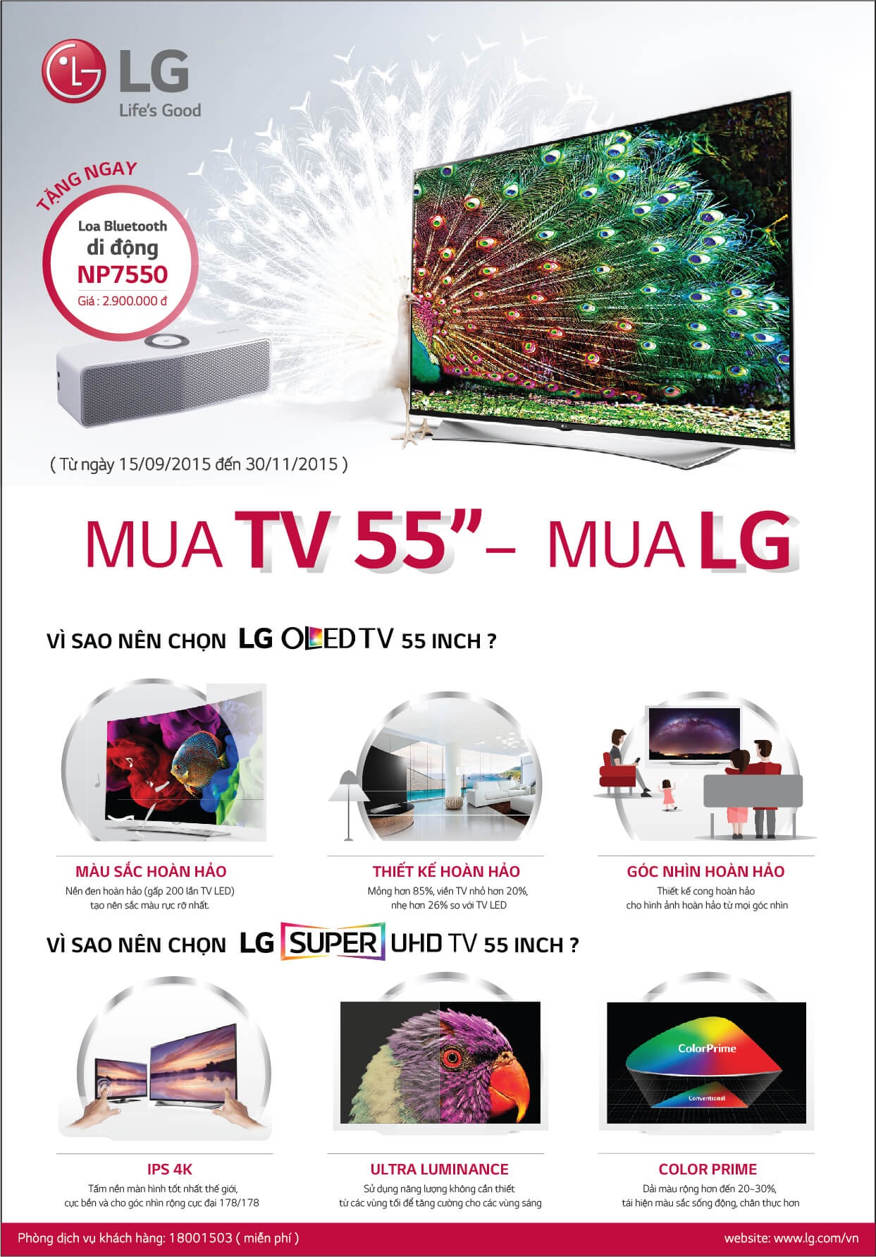 | Mua TV LG 55 inch, nhận ngay loa di động LG Bluetooth NP7550 trị giá 2,9 triệu đồng. |