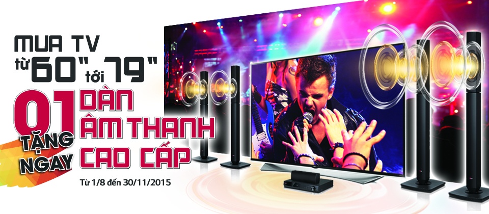 Chương trình được áp dụng từ ngày 15/9 đến hết ngày 30/11 và dành cho các khách hàng mua các loại TV 55 inch với các dòng TV LG OLED, TV LG Super UHD, TV LG 4K, sẽ được tặng ngay loa di động LG Bluetooth NP7550 trị giá 2,9 triệu đồng. Ngoài ra, khách hàng mua TV LG từ 60 inch cho tới 79 inch sẽ được tặng ngay một dàn âm thanh LG BH5540T trị giá 6,49 triệu đồng.