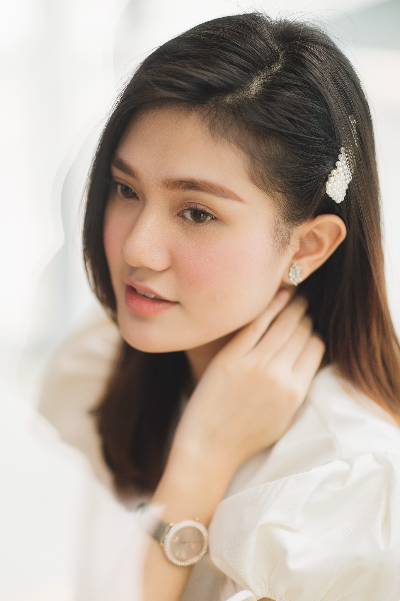 | Hồng Đào từng không tự tin vào nụ cười. Hiện tại, nhờ niềng răng, hoa khôi cảm thấy hài lòng với nhan sắc và không có ý định phẫu thuật thẩm mỹ. Hồng Đào chú trọng vào chăm sóc da, ăn uống khoa học để giữ dáng thay vì nghĩ tới việc chỉnh sửa các đường nét trên cơ thể. Ảnh: Nguyễn Thành. |