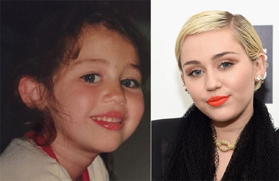 | Miley Cyrus hồi nhỏ có gương mặt tròn bụ bẫm và dễ thương. |