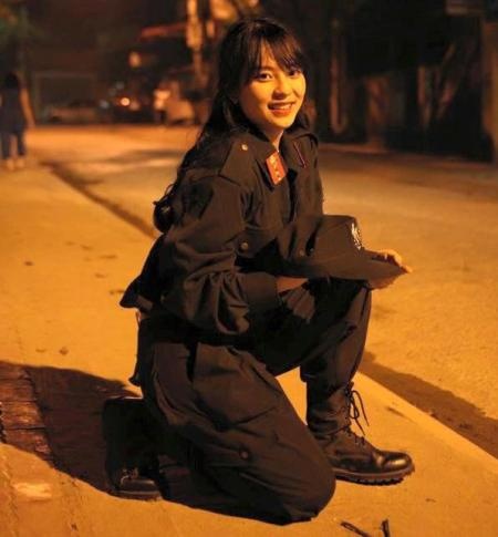 | Nguyễn Phương Anh - cô gái trong trang phục cảnh sát hiện gây chú ý trên mạng nhờ có vẻ ngoài xinh xắn, đáng yêu. |
