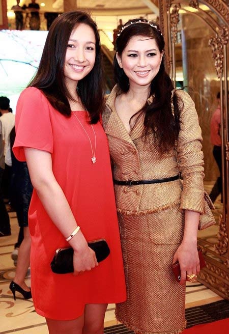 | Thủy Tiên và con dâu và sao đình đám Hà Tăng. |