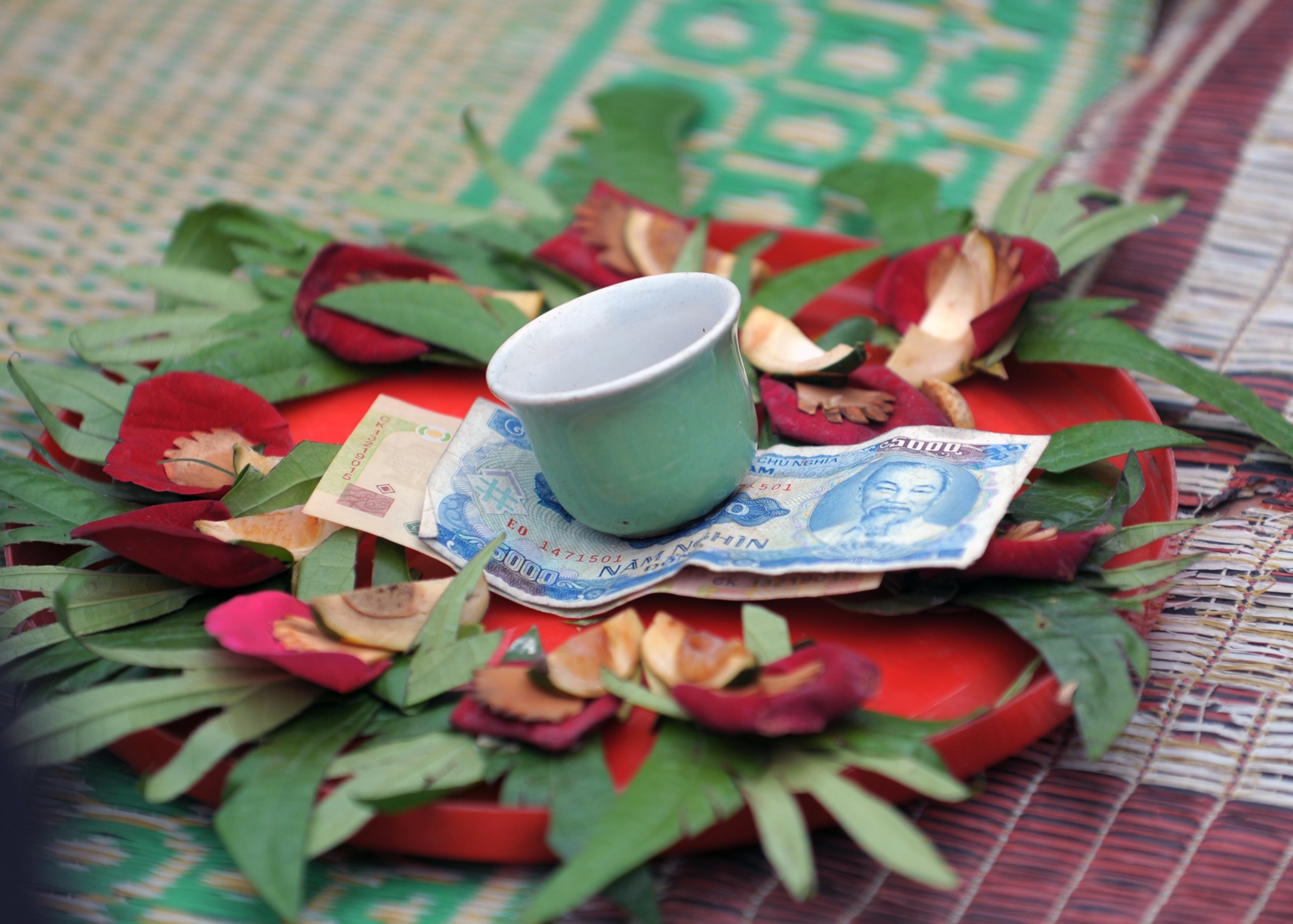 Mặc dù UBND huyện Tiên Du đã hỗ trợ chi phí cho việc têm trầu cánh phượng mời khách nhưng tại chiếu quan họ kết trạm giữa làng Diềm và làng Hoài Thị, khách dự hội vẫn phải thả tiền vào đây.