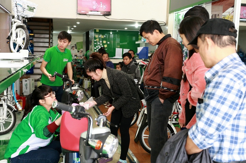 Đến từ 8h, trước giờ ưu đãi 2 giờ, anh Nguyễn Văn Loan đã sắm được hai chiếc xe đạp điện cho con trai và con gái đang học cấp 3. Anh hài lòng với công nghệ pin Lithium của iPhone, đi được quãng đường xa nhất lên tới 90 km/lần sạc, thiết kế đẹp, và tính ổn định của dòng xe này. Showroom Xóm Hồ (gần hồ Ba Góc), Tiền Phong, Mê Linh, Hà Nội cũng đón số lượng khách lớn ghé thăm. Với mức giá tiết kiệm tới 1 triệu đồng, chiếc xe Zinger Extra chỉ còn 11,5 triệu đồng, sự kiện là cơ hội để người dùng Việt sở hữu cho mình những mẫu xe giá tốt nhất từ trước đến nay.