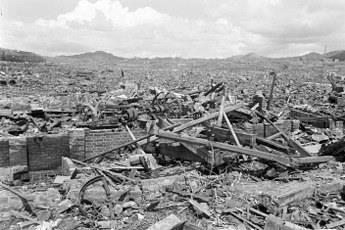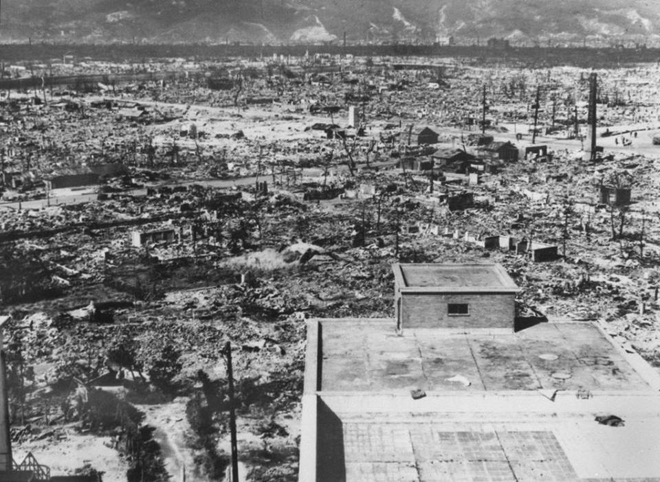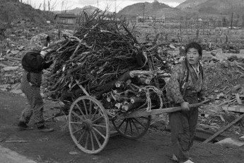 | Người dân Nagaska kéo xe củi trong thành phố vài tháng sau khi quân đội Mỹ dội bom. Ngày nay, người dân Nhật Bản luôn nhắc nhở các thế hệ về sức tàn phá khủng khiếp của hai vụ đánh bom kinh hoàng để lại nhiều hậu quả thảm khốc cho đất nước và khiến cả thế giới bàng hoàng. |