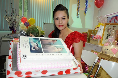 Nhật Kim Anh bên chiếc bánh kem in hình bìa album vol.7 của fan tặng. |