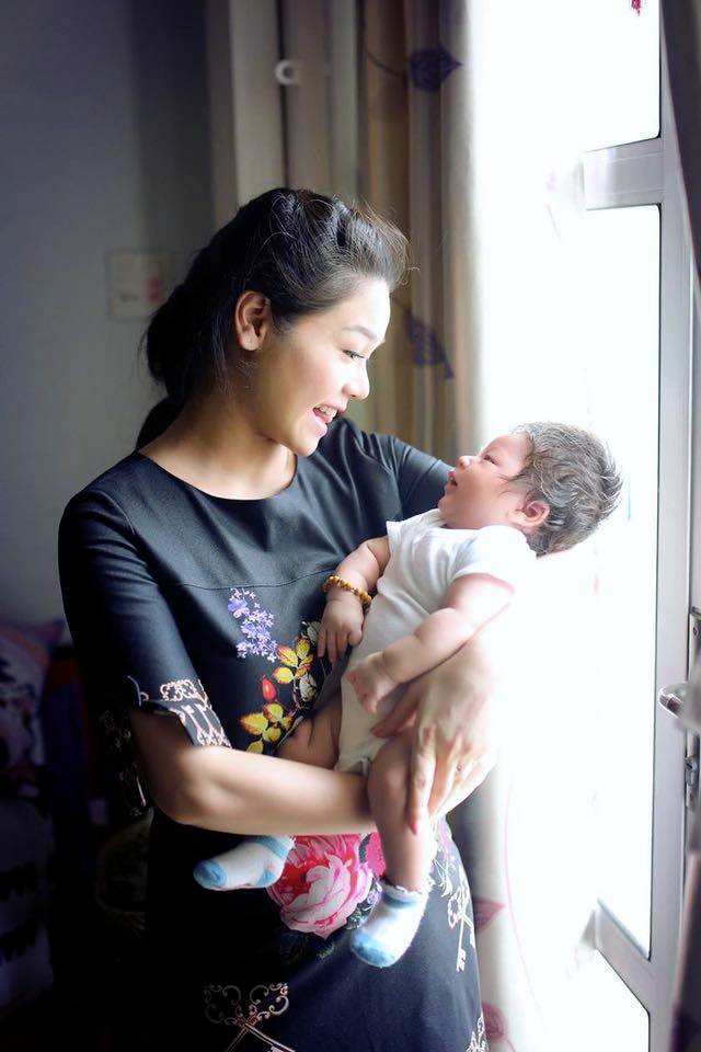 | Nhật Kim Anh hạnh phúc khoe con trai đầu lòng. |