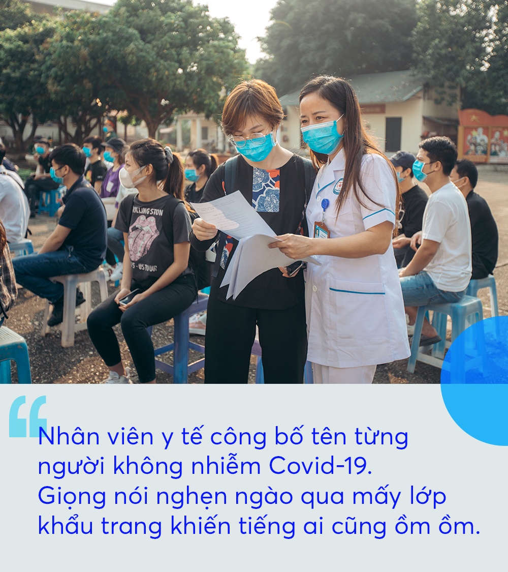 Tôi và nhiều bạn ghi lại lưu bút trong cuốn sổ bìa đỏ trên bàn. Thư cám ơn dành cho cán bộ y tế và chiến sĩ được trao tận tay. Từ trên cao, những người còn hạn cách ly vỗ tay và chào tạm biệt chúng tôi. Sau những cái ôm ấm áp, xe quân sự sẽ đưa chúng tôi trở về. Mọi người tranh thủ chụp tấm ảnh chung kỷ niệm. Tất nhiên, ai nấy vẫn phải đeo khẩu trang và không phút nào tháo bỏ.