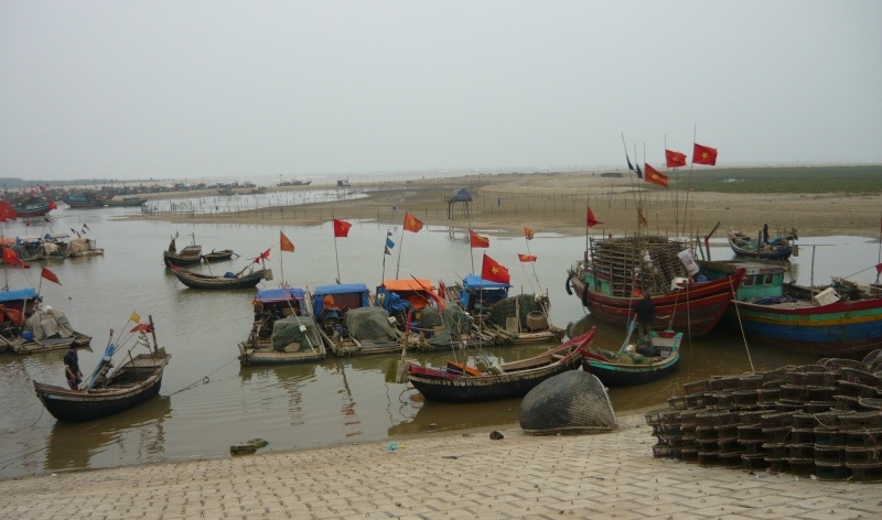 18h30 ngày 2/1, chiếc bè hành nghề "lồng bát quái" với 5 thành viên chạy vào bờ biển phường Quảng Tiến (thị xã Sầm Sơn) bán hải sản và ở lại uống rượu.