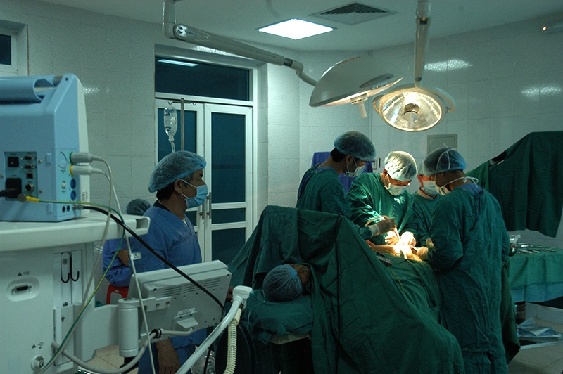 Nạn nhân Phạm Văn Hiếu (33 tuổi), Phó chủ tịch UBND xã Sơn Bình, đang được các bác sĩ khám bệnh, nhiều bác sĩ chưa kịp dỡ ba lô xuống đã bắt tay vào việc. Họ đã chẩn đoán nhanh và đưa ra quyết định phẫu thuật cho các nạn nhân ngay tại chỗ.