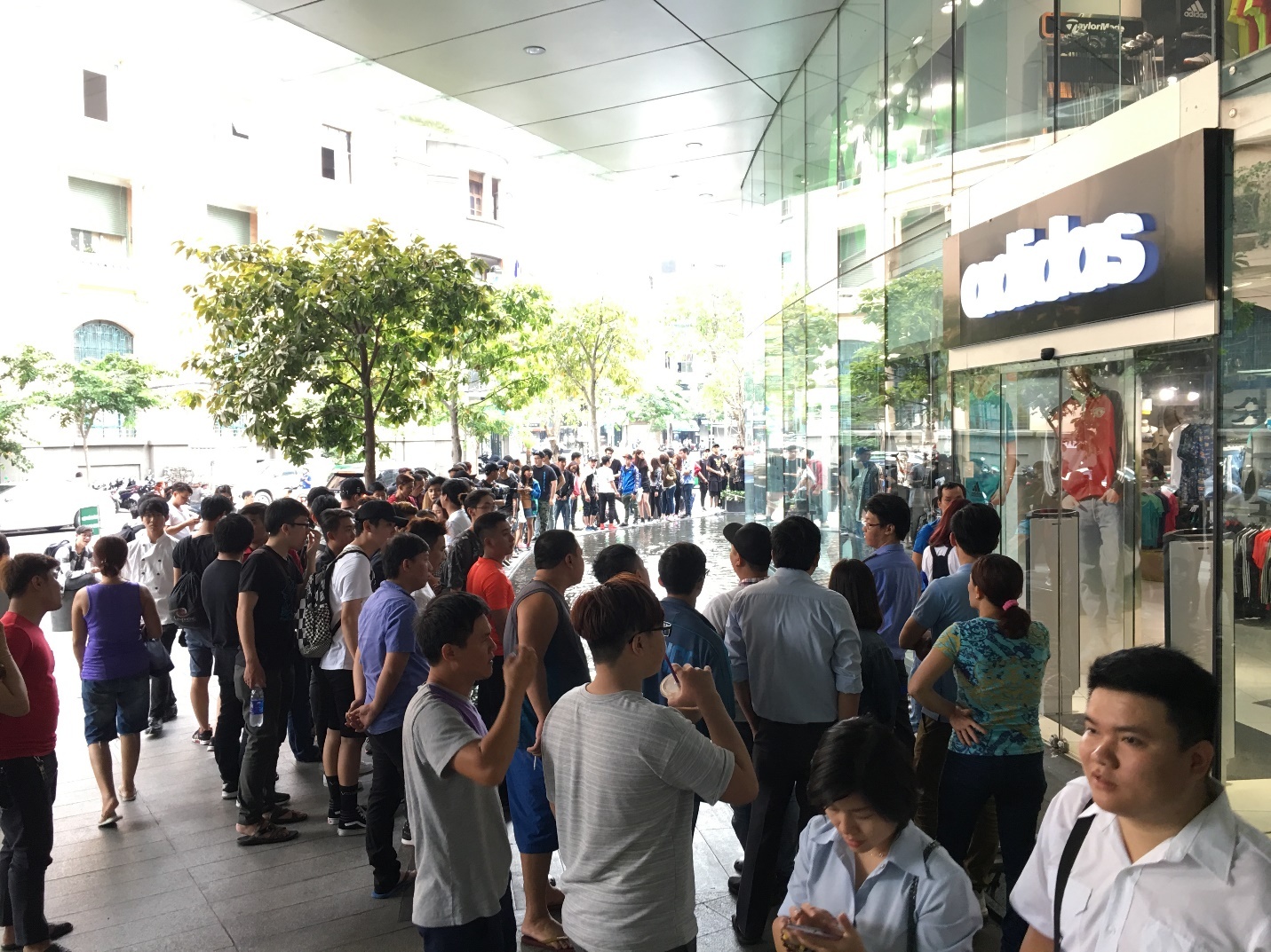 Sáng ngày ra mắt, không những thu hút đông đảo người mua xếp hàng, kể cả người qua đường cũng hiếu kỳ đón xem có gì đáng chờ đợi cho đợt ra mắt mới của adidas Originals NMD. |