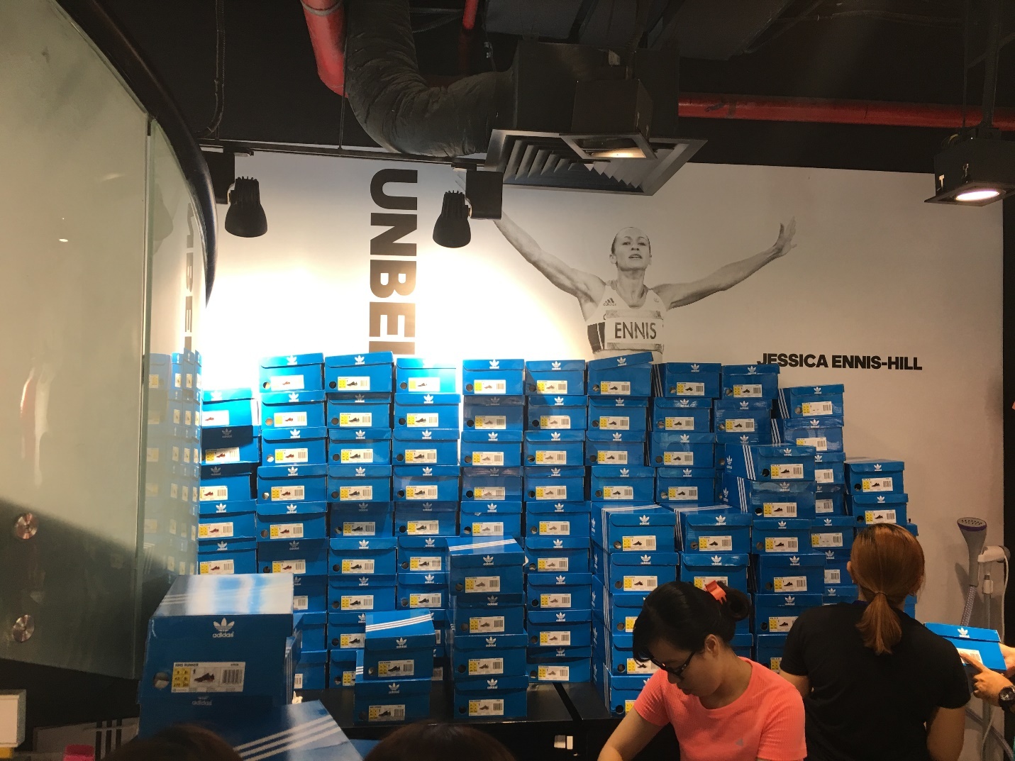 Các đôi NMD được nhân viên adidas chuẩn bị sẵn từ kho để nhanh chóng phục vụ người mua. |