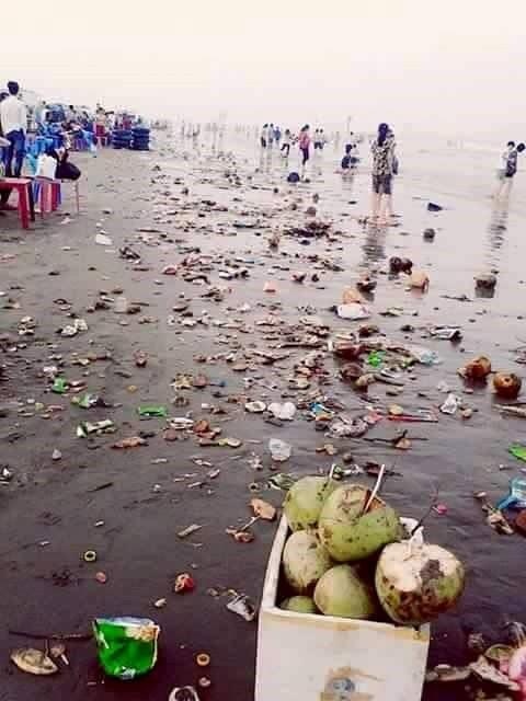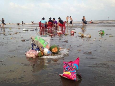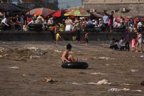 | Rác tràn ngập mọi nơi tại bãi biển Quất Lâm (Nam Định) sau ngày nghỉ lễ. |