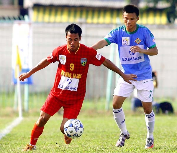 | Thi đấu yếu kém phần lớn mùa giải nhưng An Giang (áo đỏ) bất ngờ giành chiến thắng tưng bừng 5-3 trước Quảng Nam. |