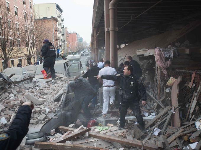 | Chính quyền thành phố xác nhận vụ nổ xảy ra sau khi người dân báo với công ty khí đốt Con Edison về hiện tượng mùi khí gas nồng nặc từ hai tòa nhà. Ảnh: AP |