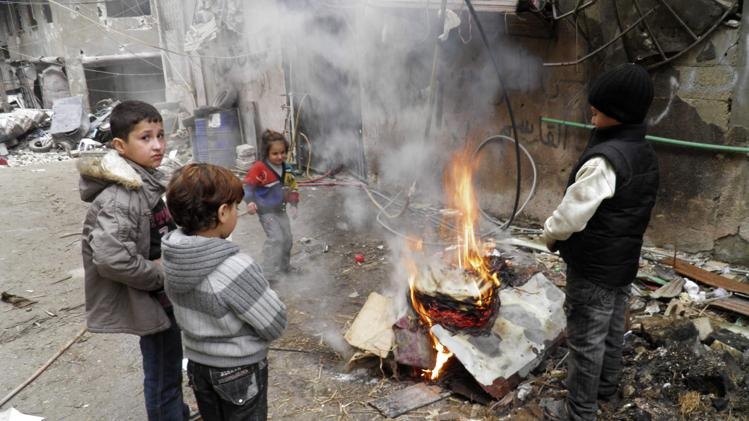 | Trẻ em đứng gần một đống lửa trong thành phố Homs để sưởi ẩm trong mùa đông vào ngày 27/1. Theo Baibars Altalawy, một người dân ở Homs, lương thực, thực phẩm, nguyên liệu, thuốc men ở Homs đều đã cạn kiệt. “Nếu chúng tôi không chết vì bom đạn, chúng tôi cũng chết vì đói hoặc lạnh”, Baibars cho biết. Ảnh: Reuters |