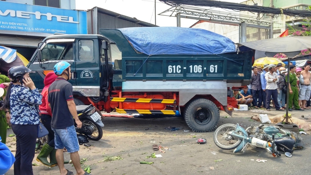 Sau tai nạn, tài xế xe ben mở cửa chạy khỏi hiện trường. Theo các tiểu thương, lúc xảy ra vụ việc, khách đã vãn bớt, nếu không hậu quả sẽ rất nghiêm trọng. Đây là chợ bán sỉ rau, thường đông người vào buổi sáng.