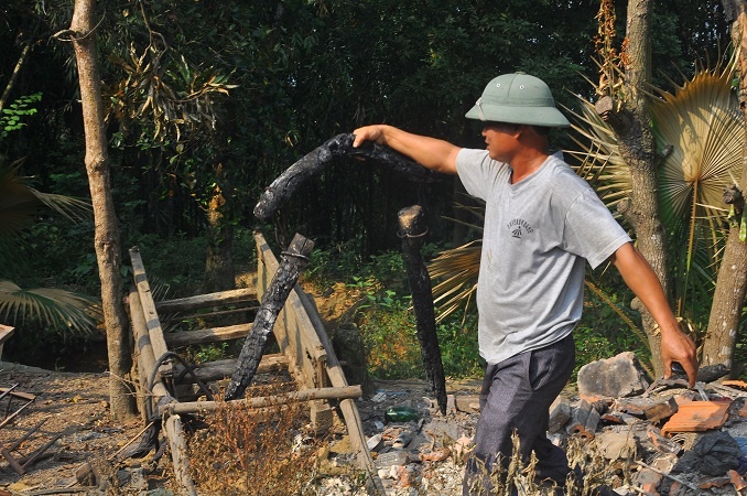 Ngồi bên đống tro tàn của ngôi nhà đã từng gắn bó bao nhiêu năm, cụ An vẫn đau đáu nỗi lo nơi ăn chỗ ở cho các cháu nội. “Năm nay tôi đã qua cái tuổi thất thập cổ lai hy, chưa biết sống được bao lâu nữa nhưng còn 2 cháu quá nhỏ. Có một ngôi nhà thì nay không may bị tàn của xác pháo hoa bay trúng đốt chạy rụi chỉ còn đống tro. Mọi đồ đạc sinh hoạt hàng ngày tới những thùng gạo, kho lúa cũng bị thui đen. Mấy ngày nay tôi bế cháu đi khắp xóm ở nhờ nhưng không ở mãi được. Các cháu còn phải lớn lên, sinh hoạt nữa. Tôi cũng đã gọi con trai và con dâu nhưng hiện tại mới chỉ có con dâu về”.
