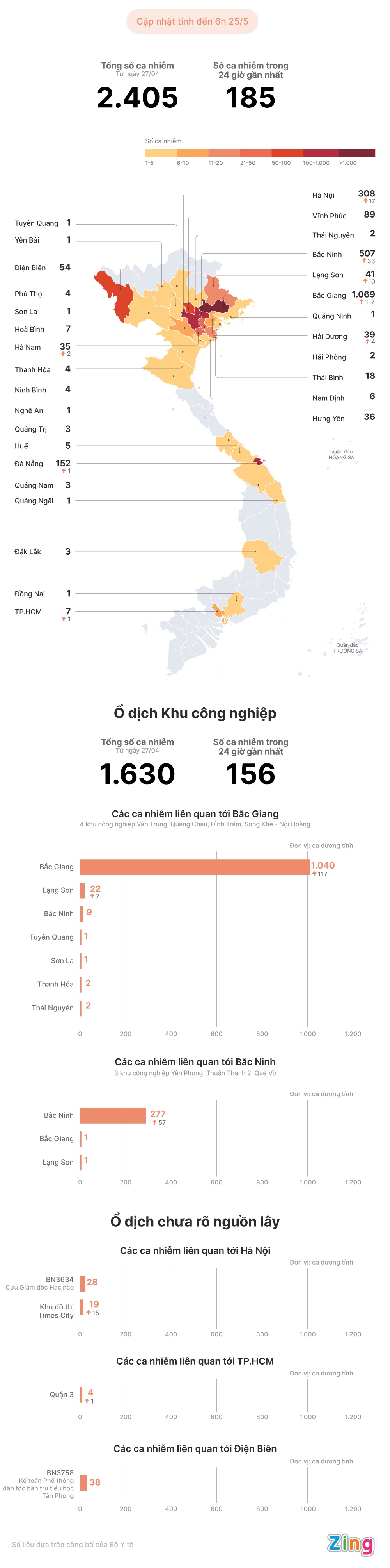 Từ 27/4 đến nay, Việt Nam phát hiện tổng cộng 2.405 người mắc Covid-19. Nhiều ổ dịch tại Hà Nội, TP.HCM, Điện Biên rất phức tạp do chưa rõ nguồn lây.