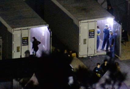 | Thi thể nạn nhân được chuyển tới nhà tang lễ tạm thời ở cảng Paengmok, đảo Jindo, tỉnh nam Jeolla ngày 24/4. Ảnh: Korea Herald. |