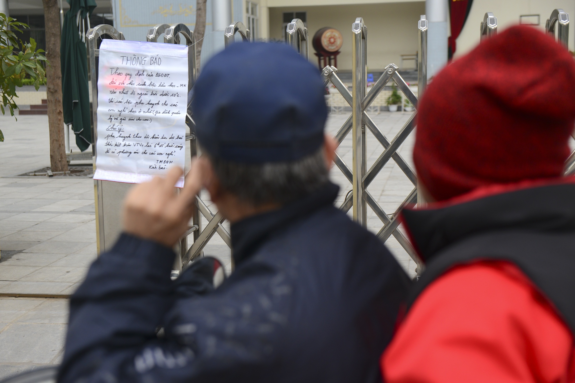 Tại trường tiểu học Yên Hòa (quận Cầu Giấy, Hà Nội), một số phụ huynh vẫn cho con đi học. Đưa con học lớp 3 tới trường từ 7h sáng, anh Nguyễn Anh Nhật (nhà tại khu Trung Hòa) nói quên không đọc thông báo tin nhắn điện tử của trường nên vẫn cho con đi học. Anh Nhật và nhiều phụ huynh khác đành đưa con quay về sau khi đọc thông báo trước cổng trường.