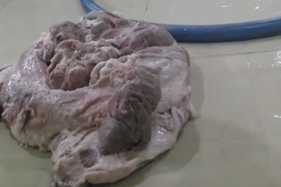 Thịt bẩn được công ty TNHH Thương mại An Phước Thắng chế biến cơm bán trú cho học sinh. |