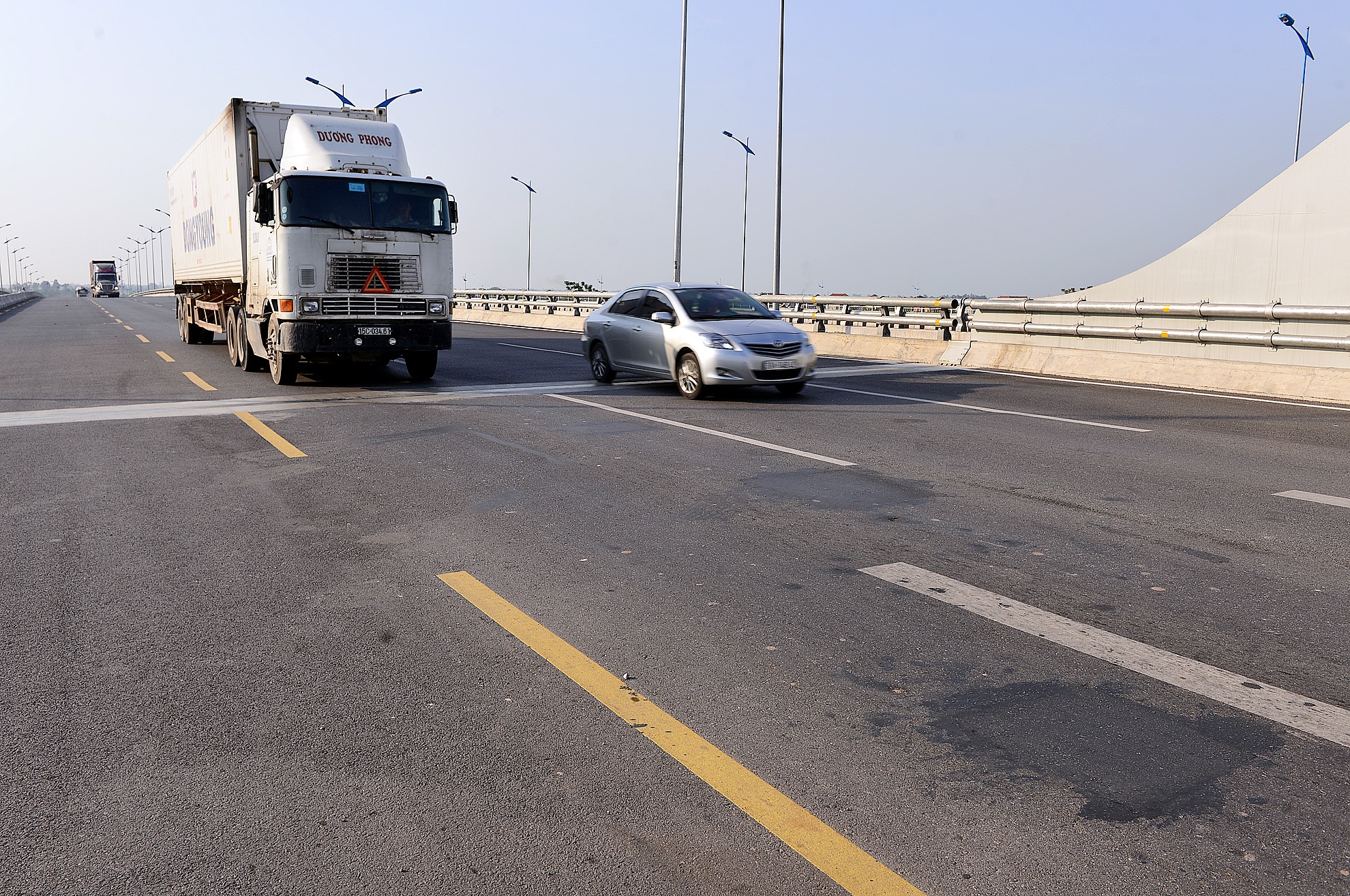 Hiện, mặt đường cầu Đông Trù xuất hiện khá nhiều vết vá. Từ hướng từ Đông Anh vào trung tâm Hà Nội, có thể thấy hàng chục miếng vá trên mặt cầu có đủ kích cỡ từ 0,5 đến vài m2.