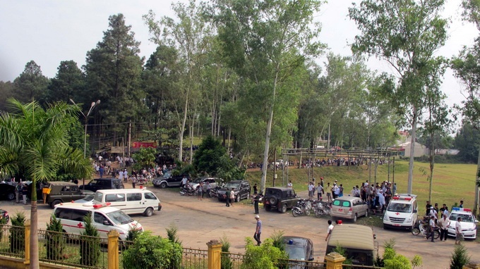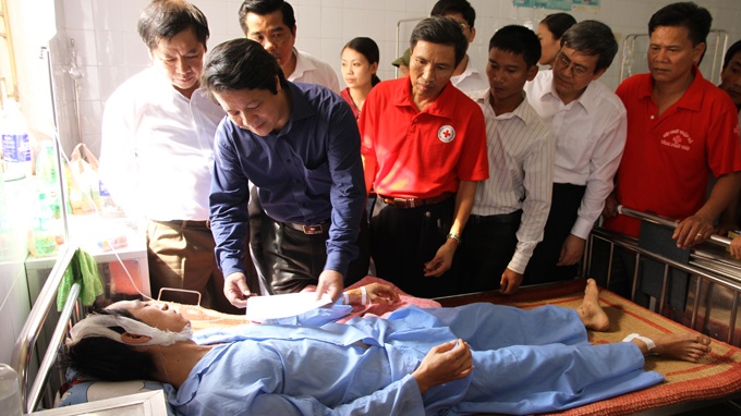 | Lãnh đạo tỉnh đi thăm nạn nhân tại bệnh viện Đa khoa thị xã Phú Thọ và các nhà dân khu 11 xã Khải Xuân bị phá vỡ sau vụ nổ - Ảnh: Quốc Hội |