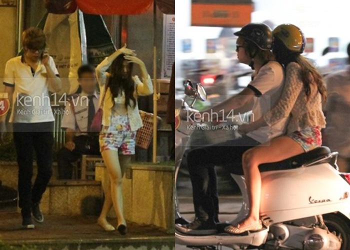| Bùi Anh Tuấn và bạn gái hot girl bị bắt gặp đi ăn khuya cùng nhau. Lúc này nam ca sĩ đã dần thừa nhận chuyện hẹn hò với nữ diễn viên Biết chết liền, do đó, họ thoải mái công khai tình cảm. Sau khi đi ăn về, Bùi Anh Tuấn chở bạn gái về nhà bằng xe máy. Lily Luta không ngại ôm eo bạn trai tình cảm. |