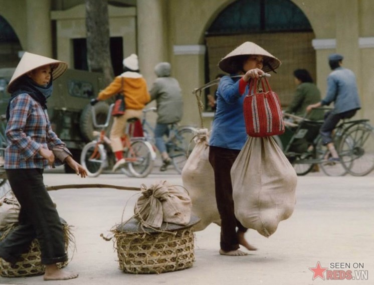 | Gánh hàng vẫn nặng trên đôi vai người lao động với mong muốn Tết này sung túc hơn. |