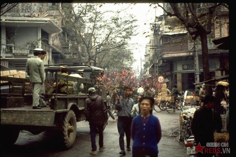 | Những cành đào phai thấp thoáng khu phố cổ. |