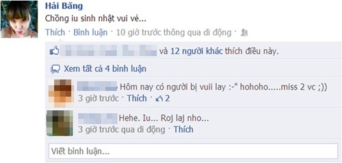 | Chia sẻ của Hải Băng trên trang cá nhân xác nhận mối quan hệ của cả hai. |