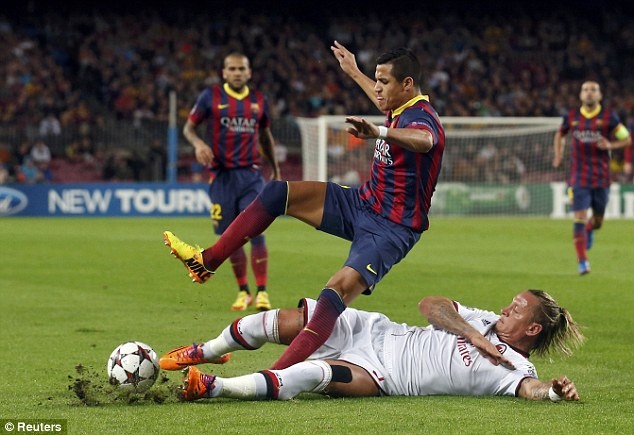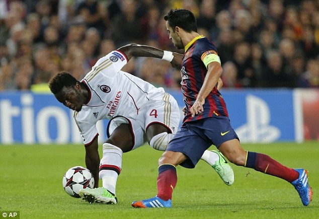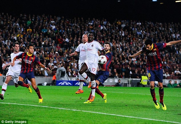 | Các cầu thủ Barca vấp phải sự chống trả quyết liệt từ phía Milan trong những phút đầu tiên. |