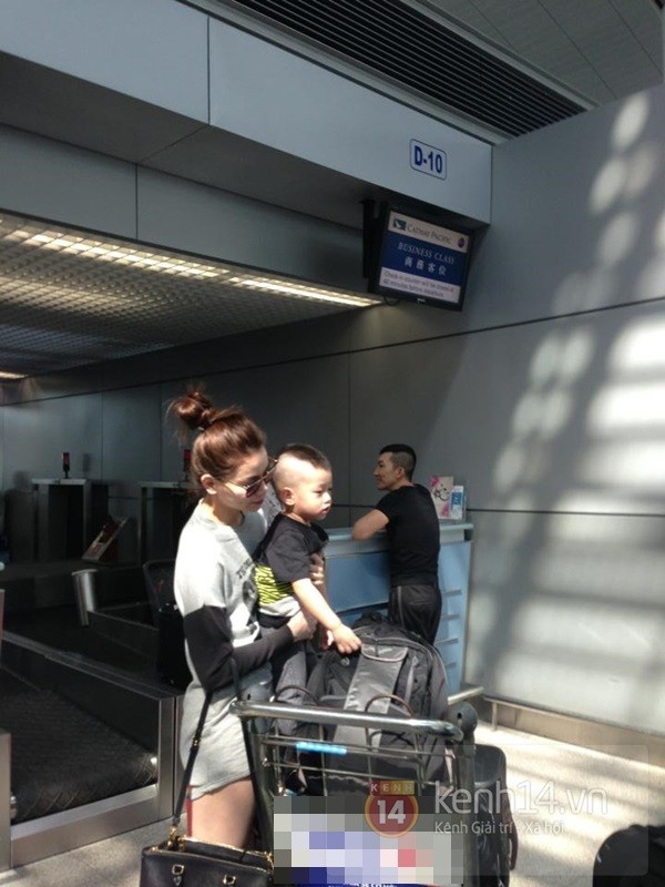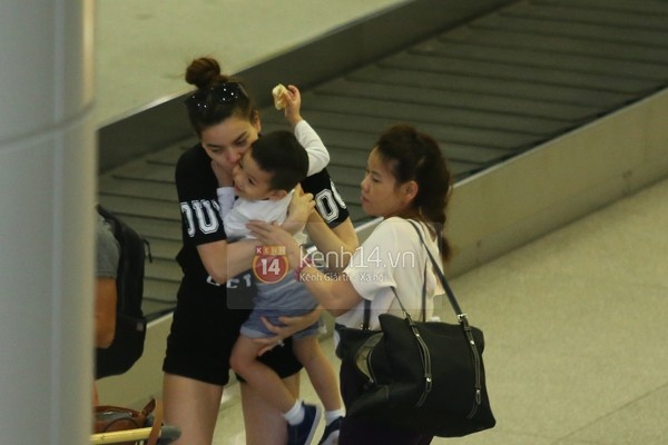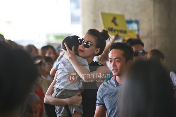 | Bố con Cường Đô la - Subeo ra tận sân bay đón mẹ Hà đi diễn xa về. Nữ ca sĩ đưa hành lý cho chồng và mau chóng ôm con vào lòng cho đỡ nhớ. |