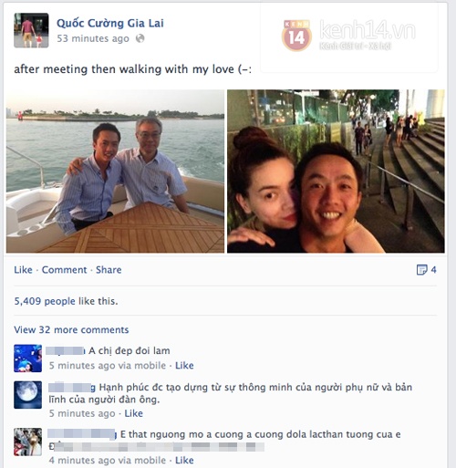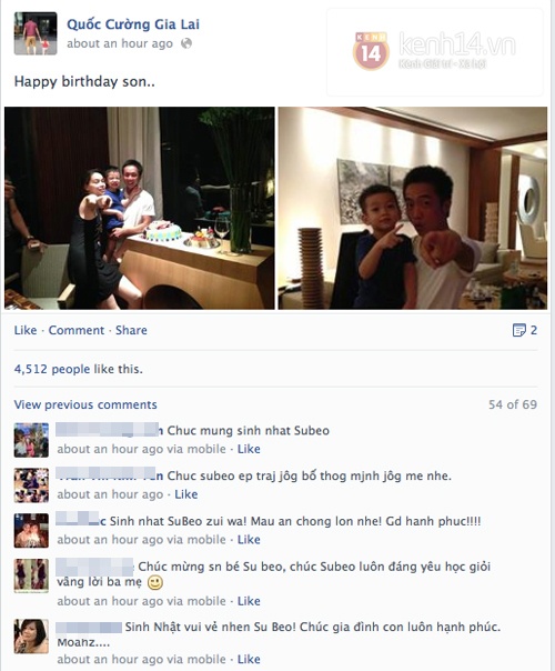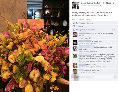 | Lời chúc đầy tình cảm của Cường Đô la trong sinh nhật vợ: ''Happy birtthday my love. We always love your darling muah muah muah .. Father & Son". |