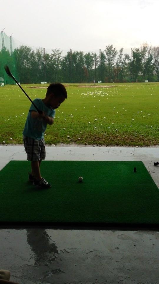 | Vài ngày sau, Cường Đô la bất ngờ đăng bức ảnh Subeo đang chơi golf. Tư thế đánh cực chuyên nghiệp và ra dáng người lớn của Subeo đã khiến cho nhiều người thích thú. |