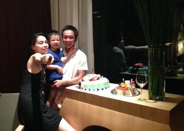 | Gia đình hạnh phúc trong ngày sinh nhật tuổi lên 3 của con trai Subeo. |