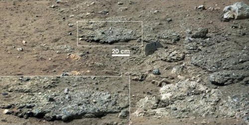 | Khối đá hình kim tự tháp được phát hiện trên sao Hỏa trong ngày thứ 43 của Curiosity trên hành tinh "láng giềng" của trái đất. |