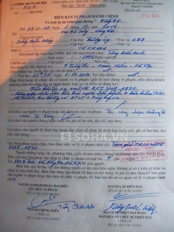 Ngoài lỗi vi phạm không có gương chiếu hậu, Mr.T còn không mang theo giấy tờ xe, không có bảo hiểm nên đã bị lập biên bản vi phạm hành chính và biên bản tạm giữ xe 10 ngày giống như Yanbi.