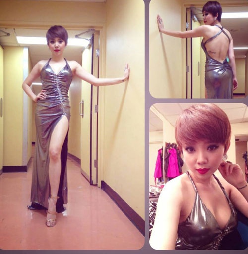 | Tóc Tiên luôn xuất hiện trên sân khấu với những bộ trang phục có nhiều đường cắt cúp cực táo bạo và khoe trọn đường cong quyến rũ của cô gái trẻ. |